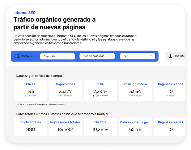Tienes un panel donde puedes ver qué páginas están creciendo, qué está funcionando y qué está trayendo movimiento real a tu web.